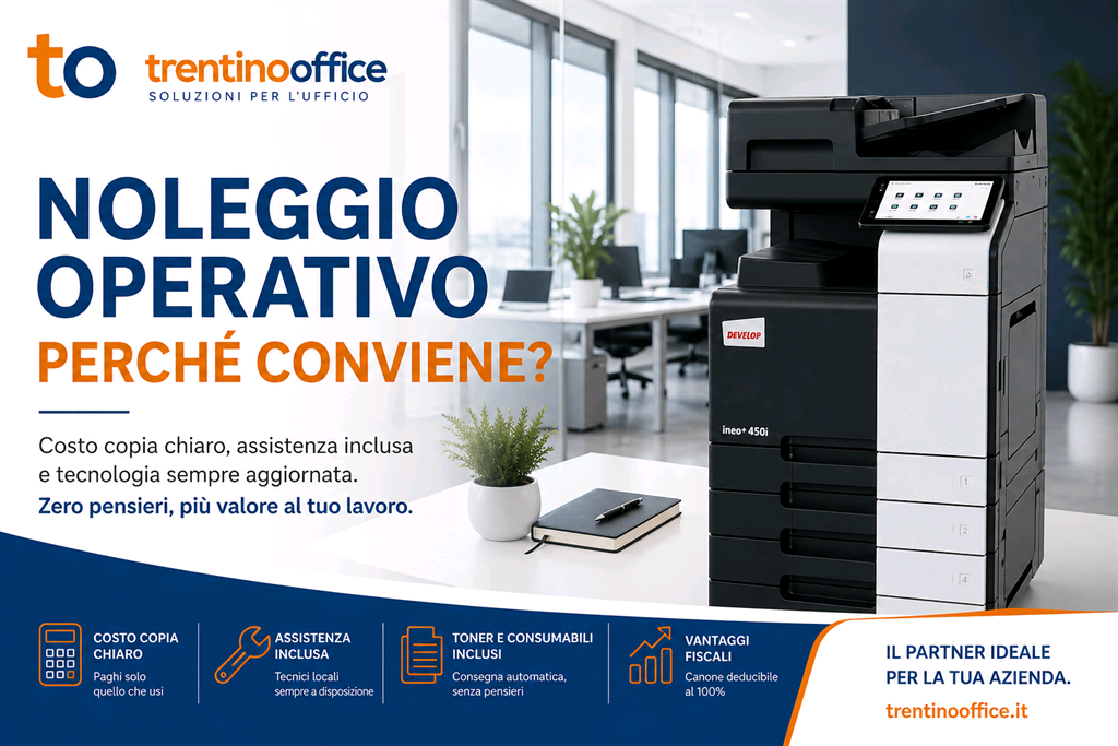 Il noleggio operativo stampanti è una delle soluzioni più convenienti per aziende, studi professionali, scuole ed enti che vogliono lavorare con stampanti multifunzione sempre efficienti, senza immobilizzare capitale e senza preoccuparsi di assistenza, toner e manutenzione.